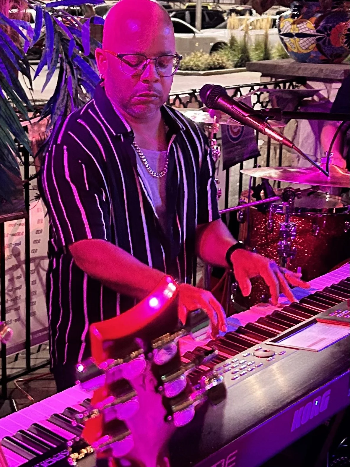 With more than 30 years of experience, Chris—known as CJ—has shared his keyboard talents on stages from St. Louis to Chicago. His versatile background spans classic rock cover bands, alternative groups, Top 40 performances, and even Chicago’s vibrant indie music scene of the early 1990s. This diverse foundation shaped a performer known for rich vocal harmonies, powerful arrangements, and captivating stage presence.